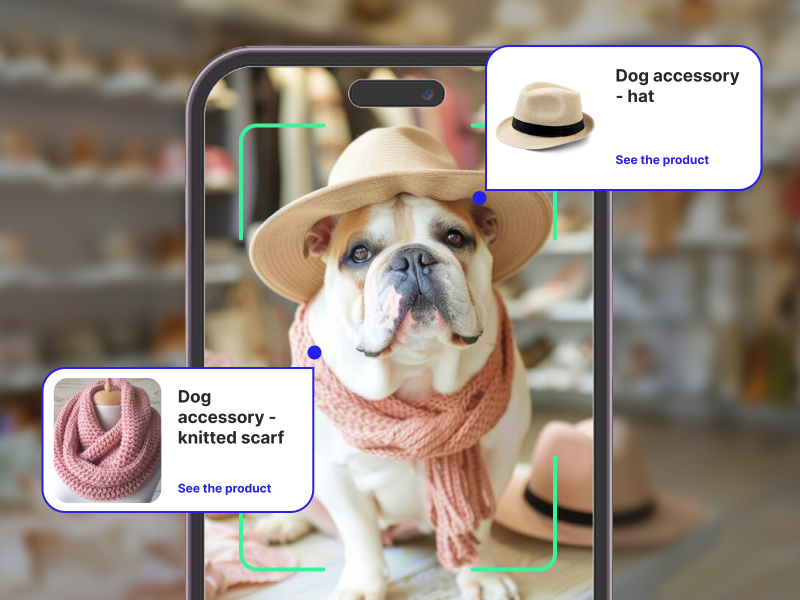 - Клиентът качва снимка на своя домашен любимец, AI я анализира и препоръчва аксесоари или легла според размера, породата и стила.