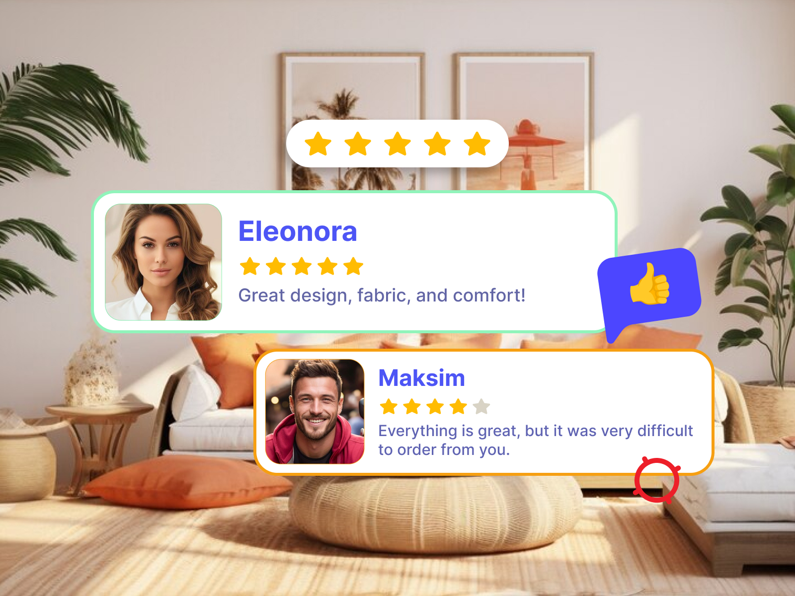 - Анализ на нуждите на клиентите: Изкуственият интелект може да анализира поведението на посетителите в реално време, включително история на сърфирането, предпочитания и покупки, за да им предложи подходящи мебели, декор или инструменти.