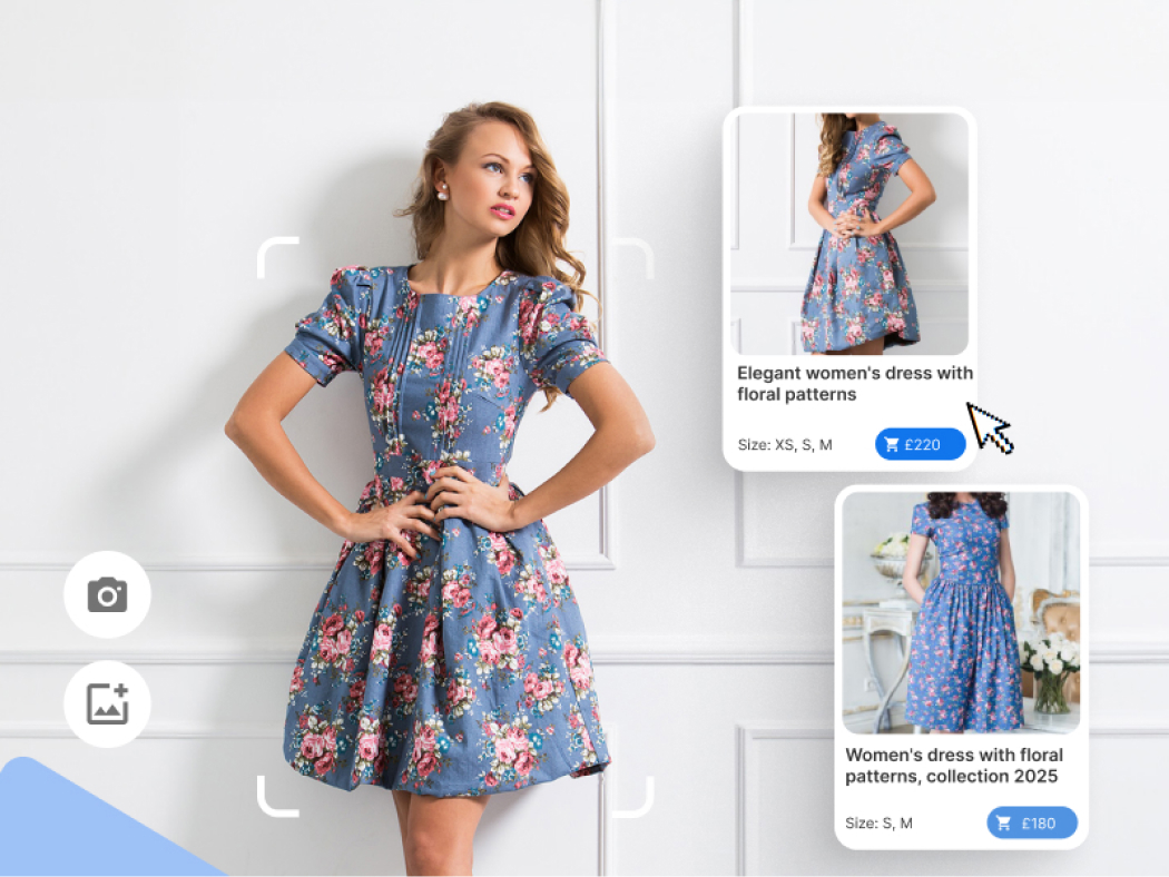 - Търсене на изображения: Клиентите могат да качат снимка на желания продукт и AI ще им покаже подобни артикули от каталога на магазина.