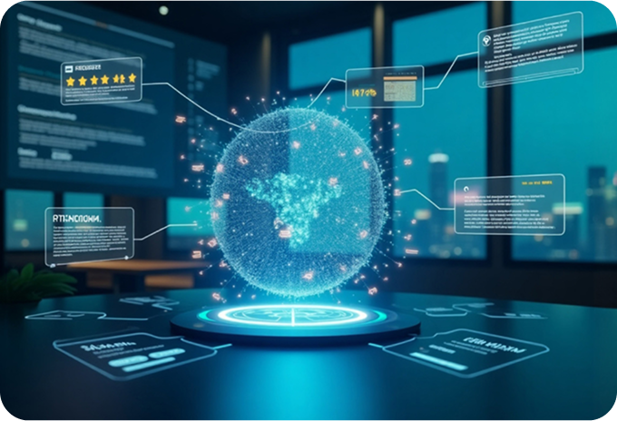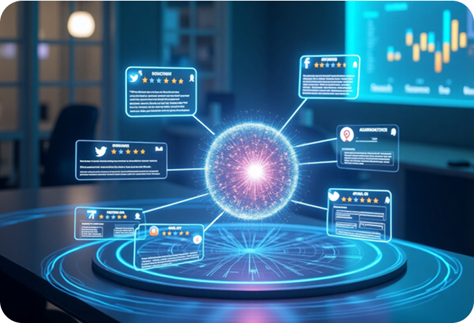 Изкуственият интелект събира и организира отзиви, оценки и коментари от различни платформи: