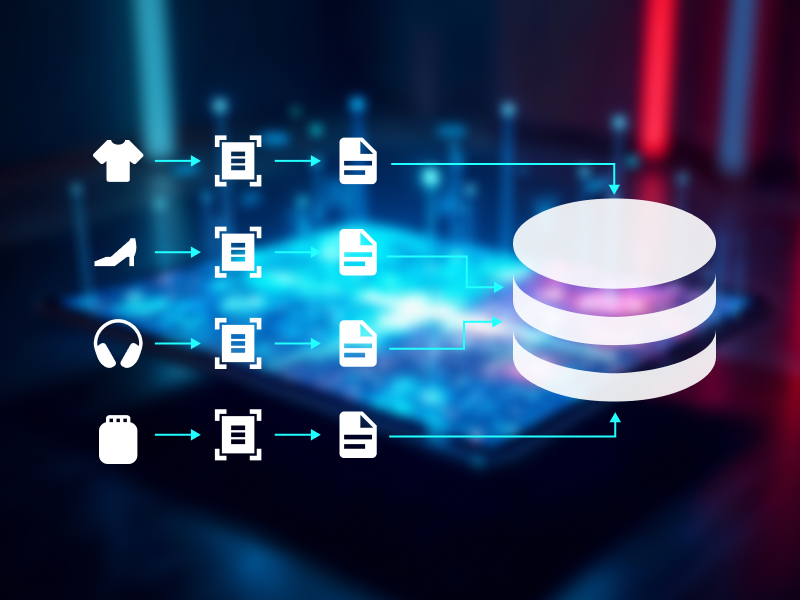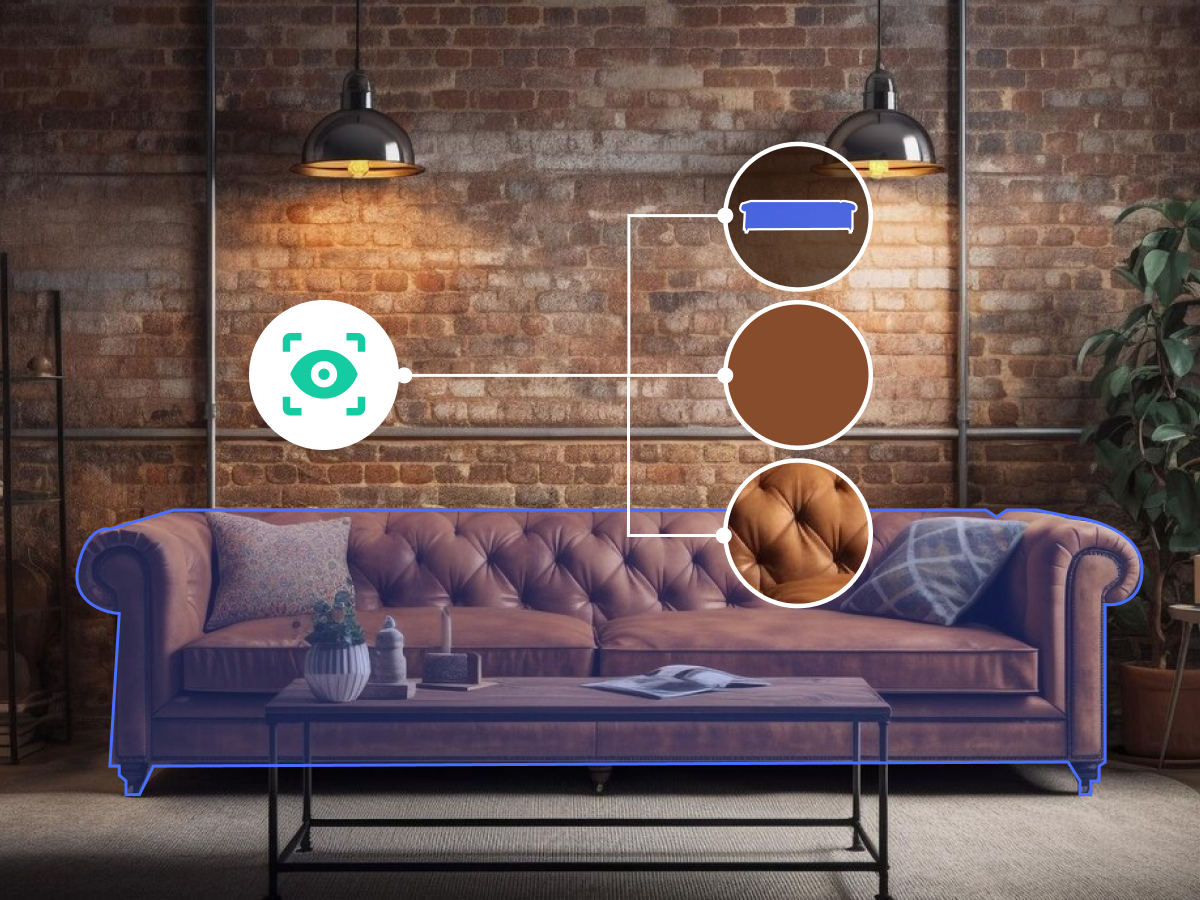 - изображение, описание на продукта, цвят, материал, размери и други специфични детайли. Обширната база данни е ключова за точността на търсене, основано на изкуствен интелект.