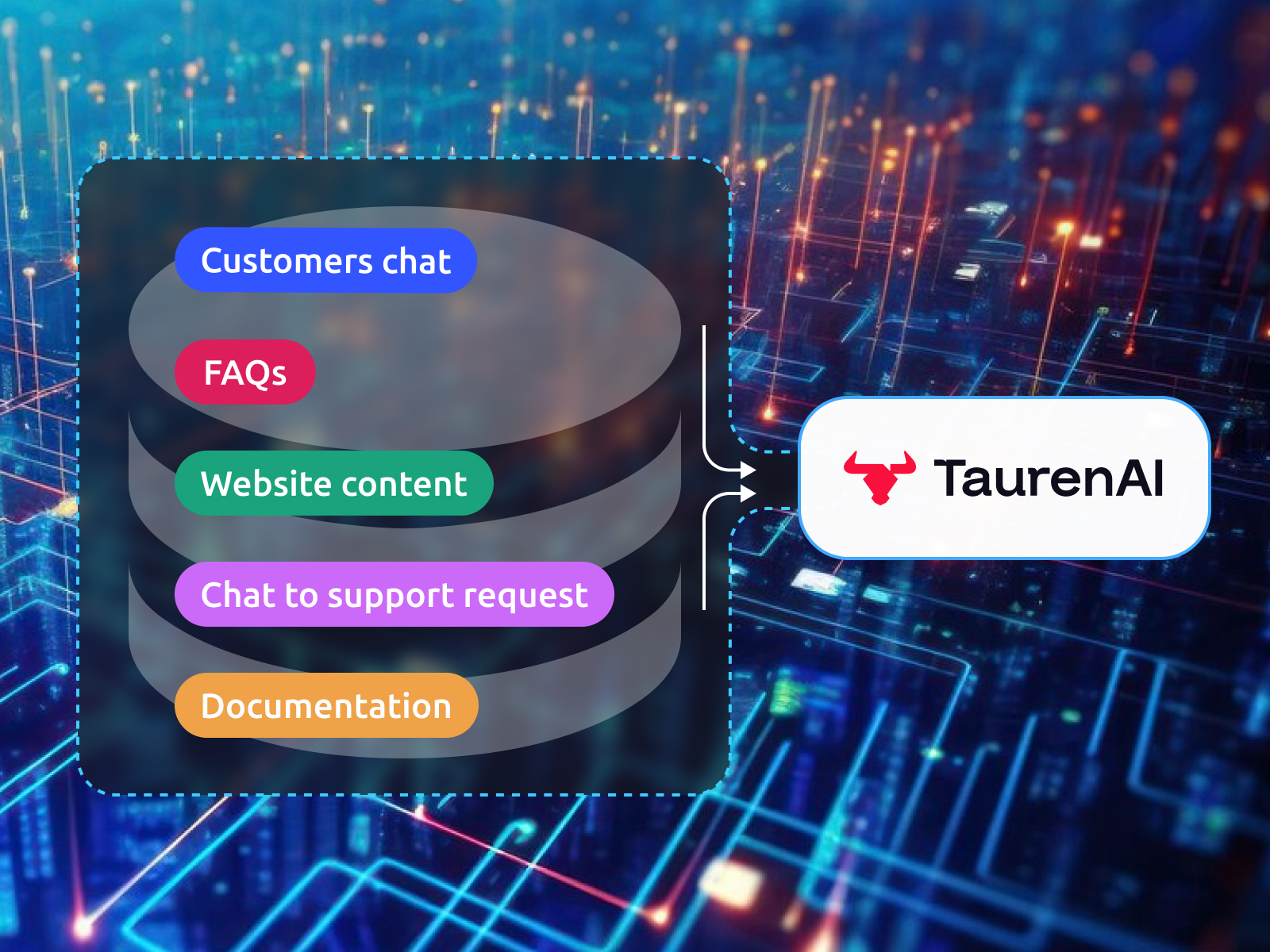 TaurenAI се интегрира лесно с популярни CMS платформи като, Shopify, WordPress, Magento, Custom CMS и други, както и чат приложенията (Facebook, Viber, WhatsApp), осигурявайки безпроблемно внедряване и адаптация.